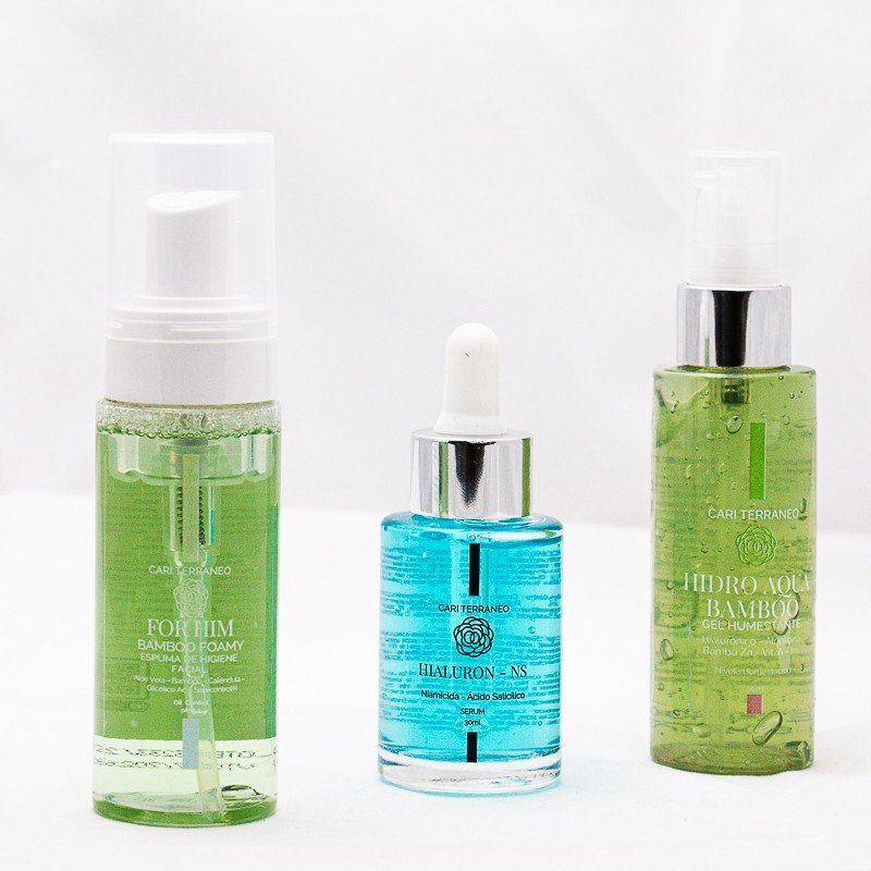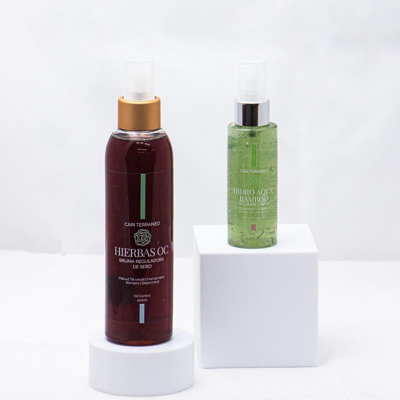 Bruma + limpiador + serum + hidratante control acné + hidratante descongestivo acné + protector solar.
