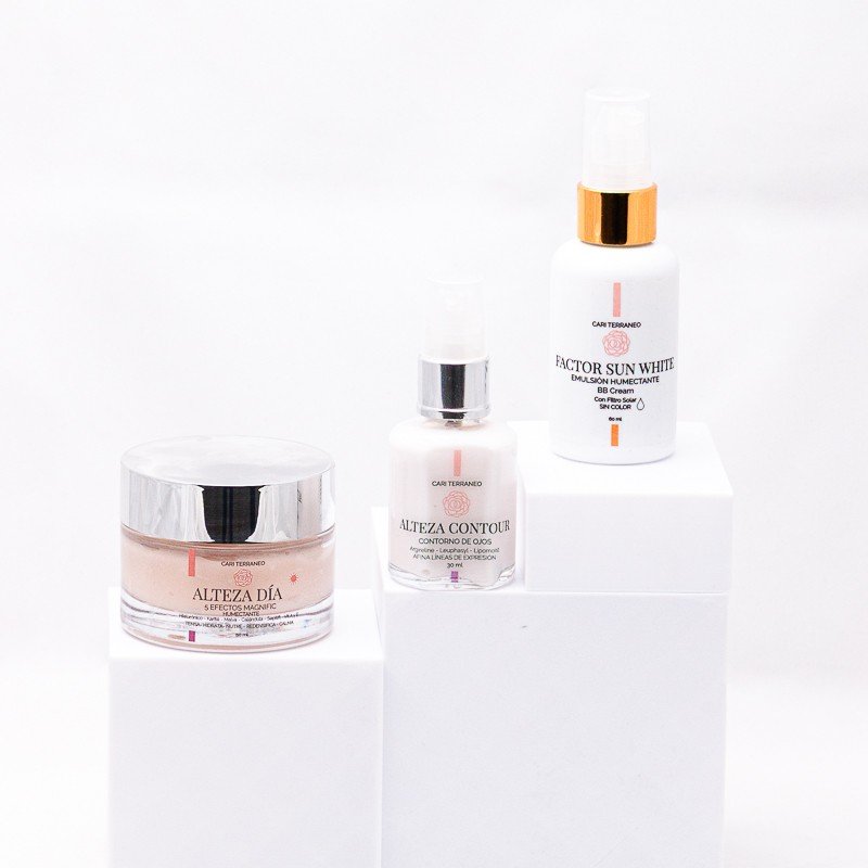 Hidratante´día + crema renovadora noche + contorno ojos.